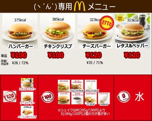 ハンバーガー170円とか3個で松のやの朝トンカツ定食超えるやん