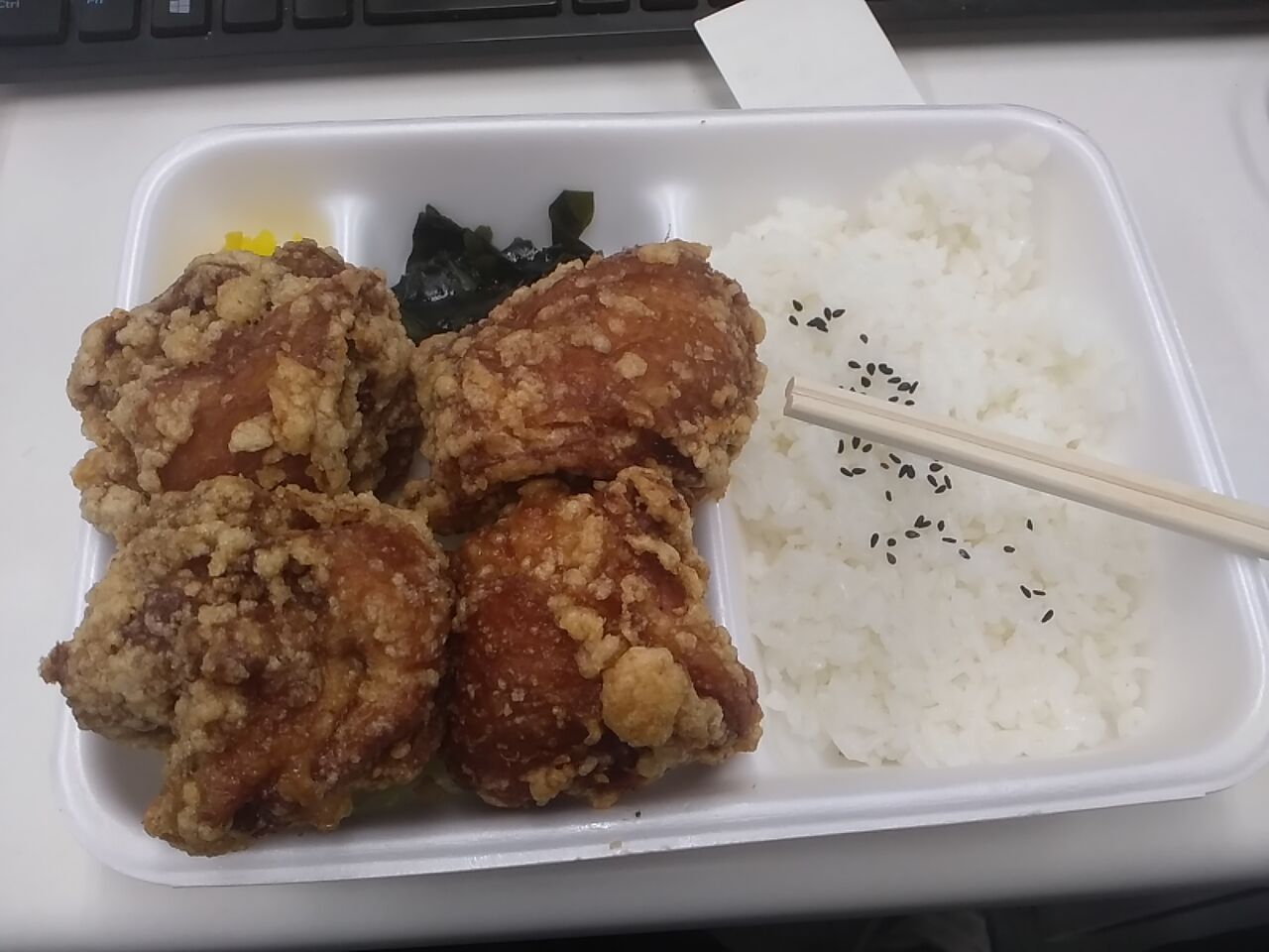 唐揚げでっけーな。それともご飯がちっさいのか?