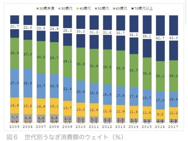 高齢者の人口は年々増えている。うなぎグラフも高齢者増加に比例してるだけじゃない?