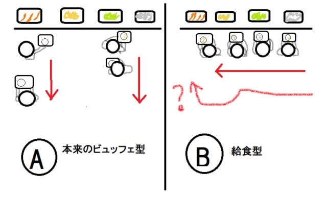 要するにビュッフェスタイルなのにBみたく自然と給食スタイルになっちゃってると