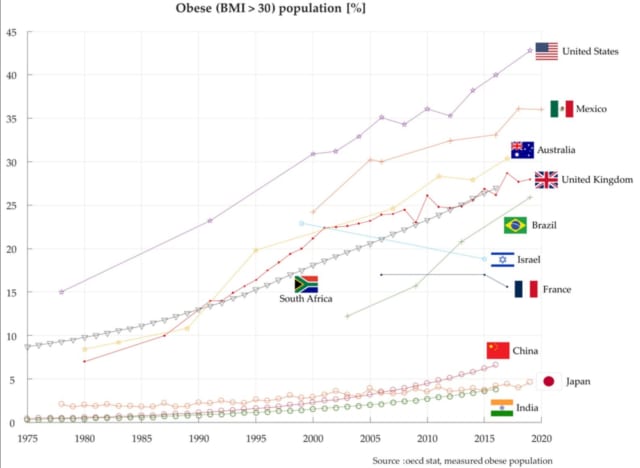 他国に比べれば緩やかとはいえ、日本人も右肩上がりなんだね。