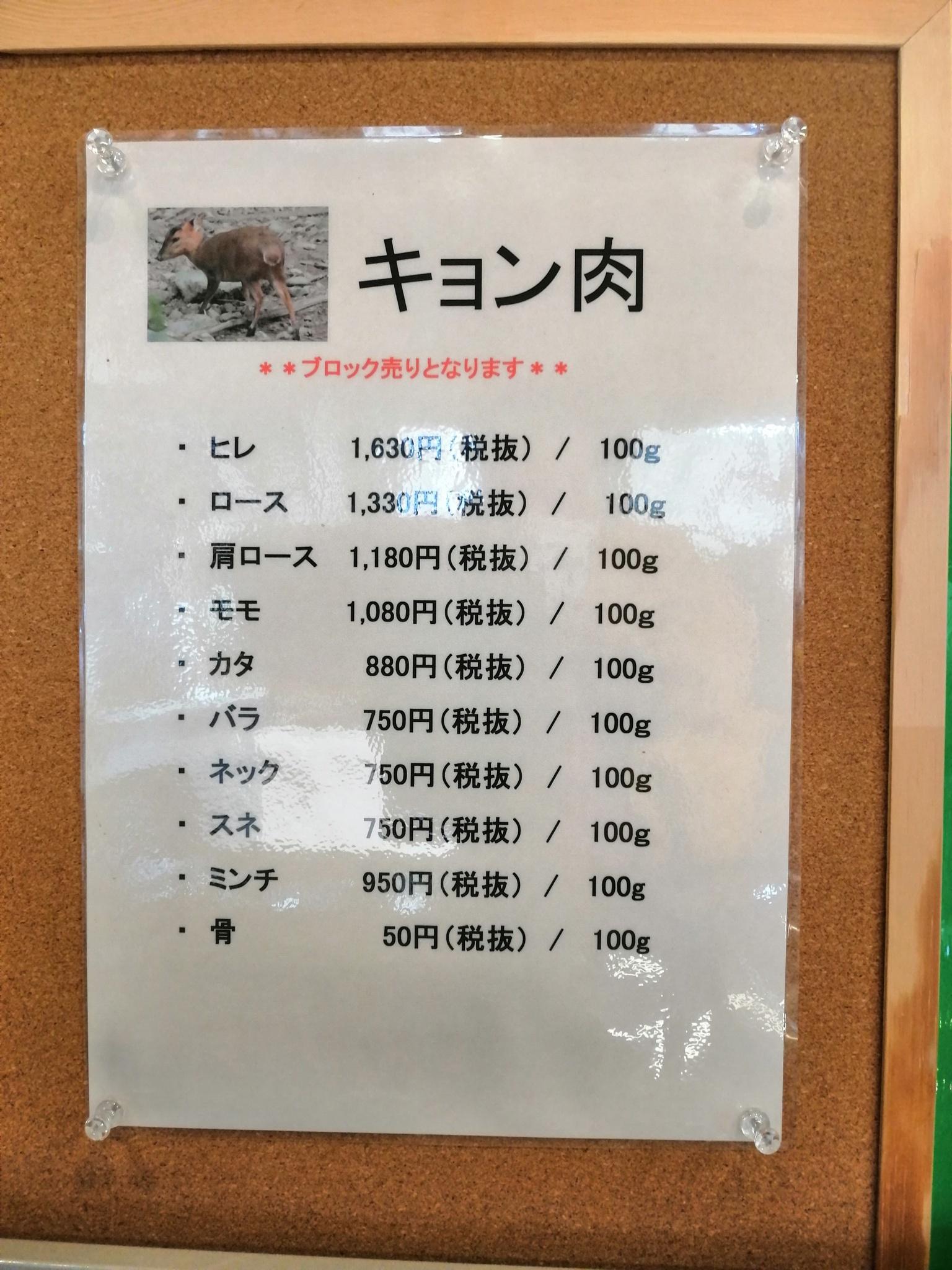 15kgの肉が取れて100g千円、解体加工賃と利益乗せるとやっぱ最低でも300円超えちゃうよね