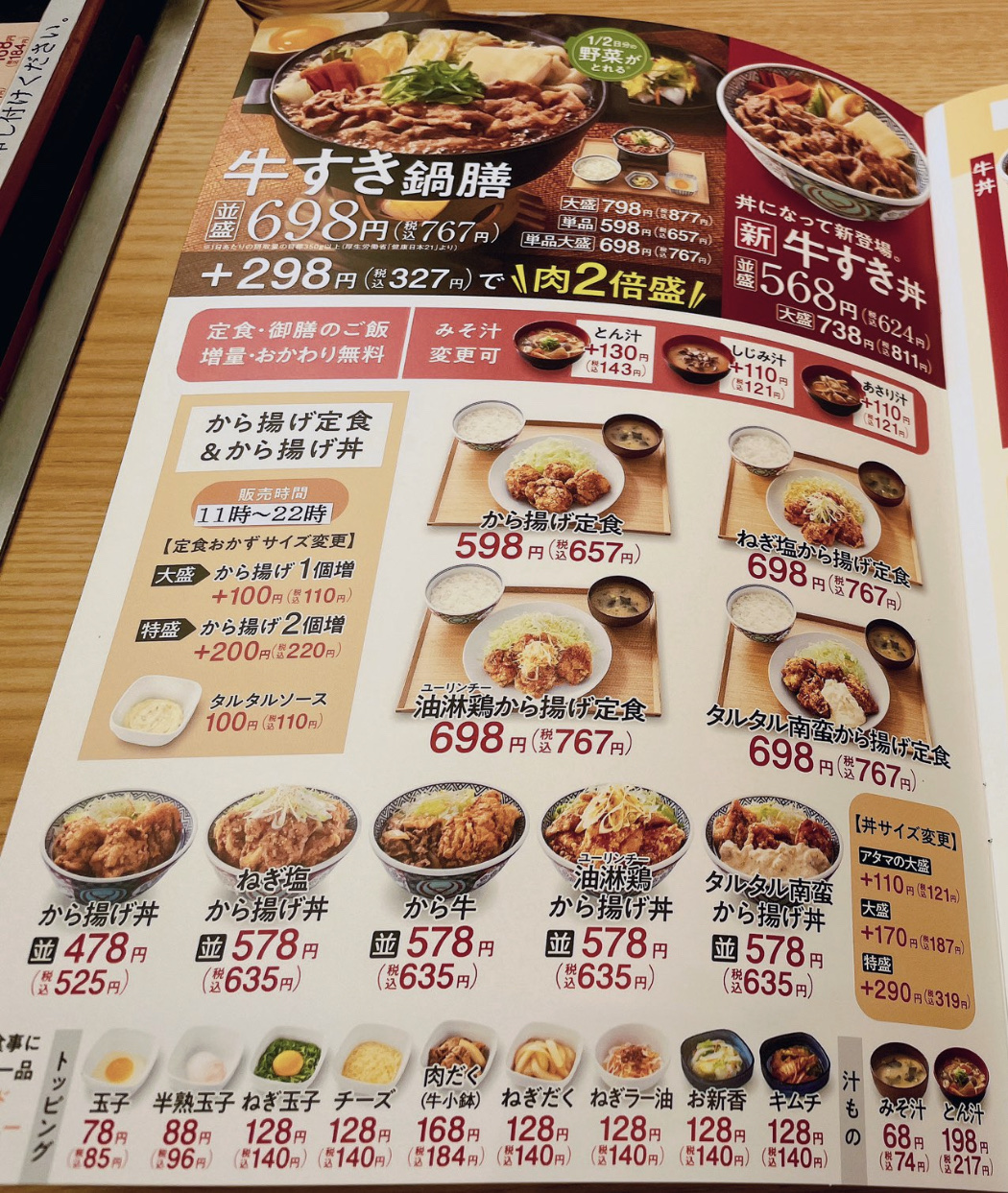 吉野家で唐揚げ食べたらもう牛丼なんて食べなくなるんだから唐揚げメインでいった方が良いくらいなのに