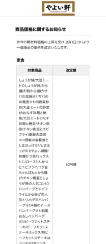 だけで、具体的にどのメニューがいくら値下げ・値上げするかさっぱりわからんのよね