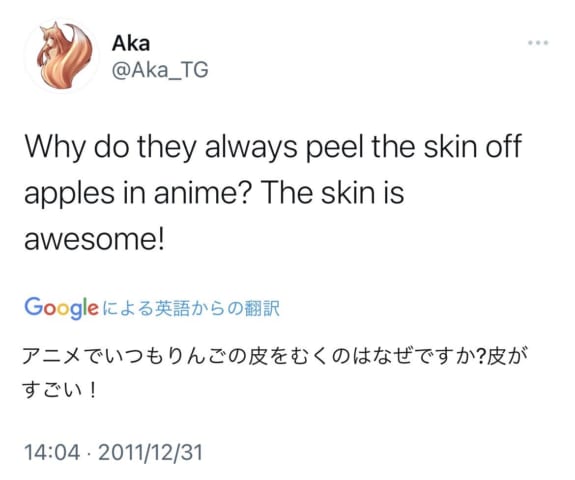 日本じゃ昭和の時代に不味いと判断された青リンゴ。リンゴ≒青リンゴな海外(特に米国)。青リンゴ≒毒リンゴな童話の世界。日本皮を剥く文化確定が確定