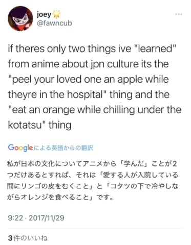 「コタツの下で冷やしながらオレンジを食べること」になってるの草