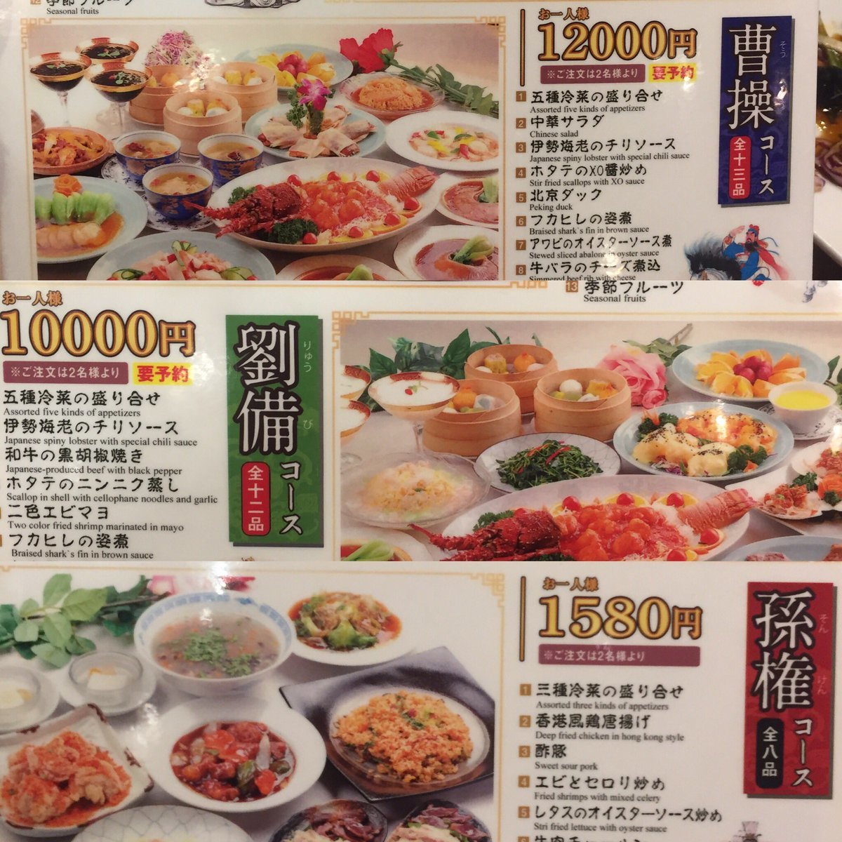 中華料理屋「曹操と劉備のフルコースはこんなもんでええか?孫権はこれで」