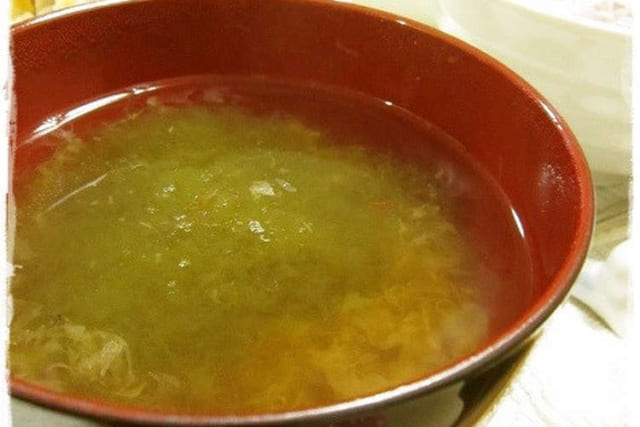 お椀にとろろ昆布、醤油少々、味の素少々入れてお湯を注ぐだけ。