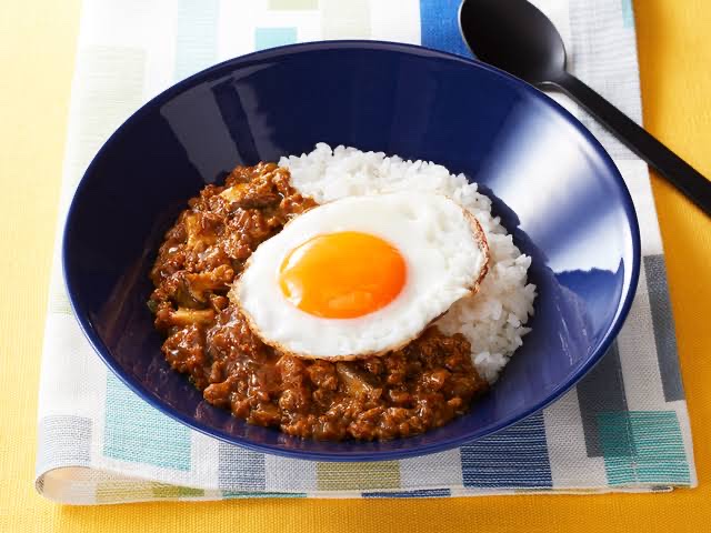 やっぱキーマカレーには目玉焼き乗ってないと嫌だわ
