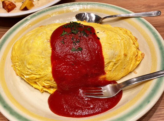 ポムの樹のLサイズがワイが普段家で作るオムライスの大きさやわ