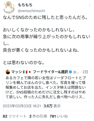 結局は写真を撮る事がメインじゃないの?で、明らかにフードロスの言い訳でしかなさそう