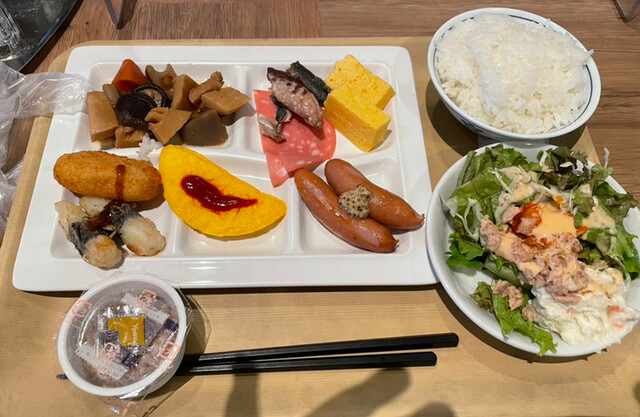 盛り付け汚いのもあるけど、まあ朝食バイキングはこんなもんやろ