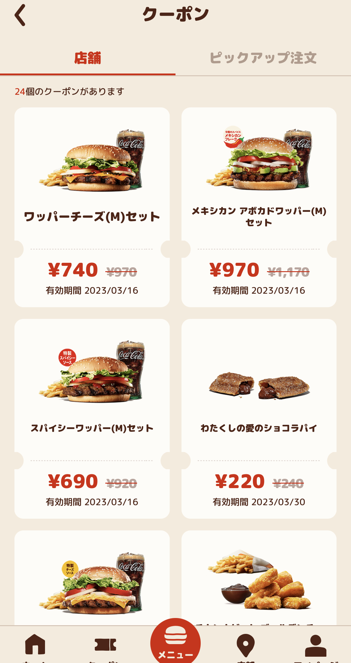しかもバーキンはマックと違ってクーポンの値引き額が高い