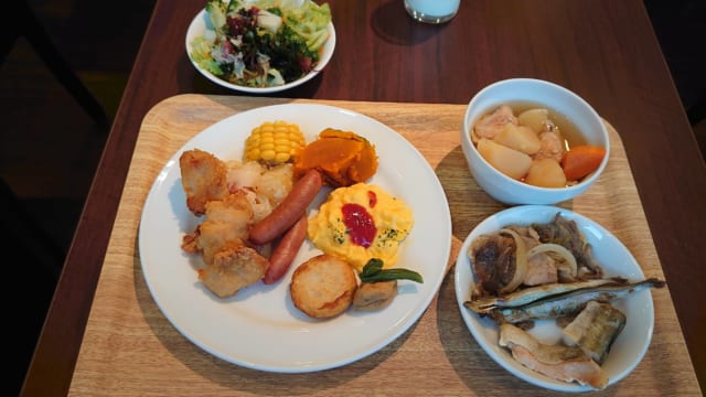 フランス語のビュッフェはセルフ式の食事の事で、自分の食べられるだけ皿に取るもので