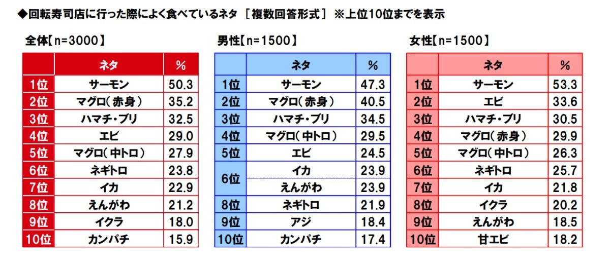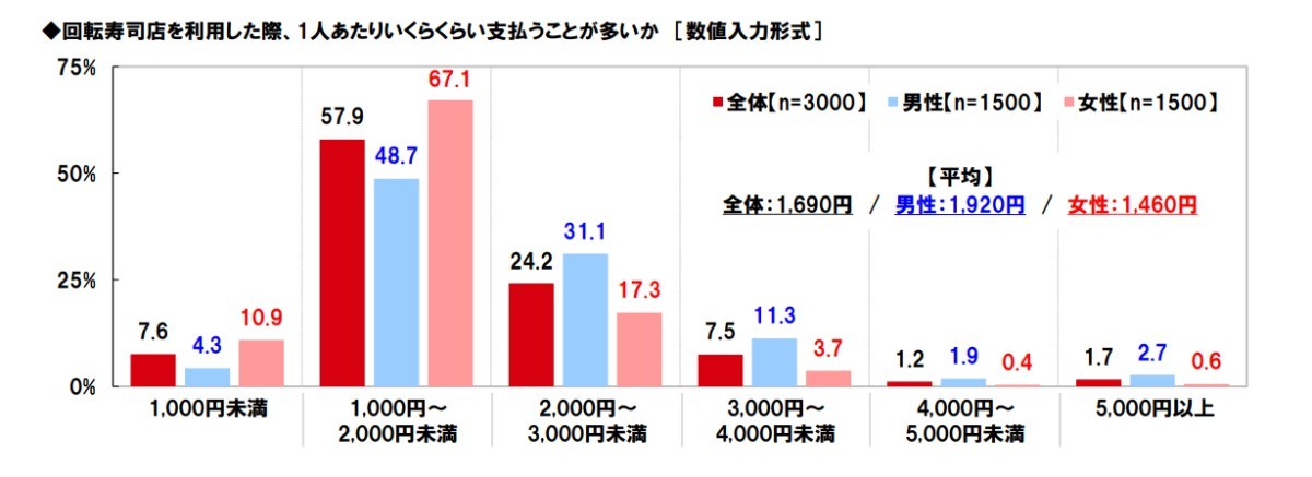 回転寿司で何皿食べる? 男平均11.9皿 女平均8.0皿