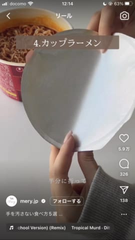 つべで見たんだが、カップ焼きそばをライスペーパーに巻いて食うと手汚れないらしいぞ。