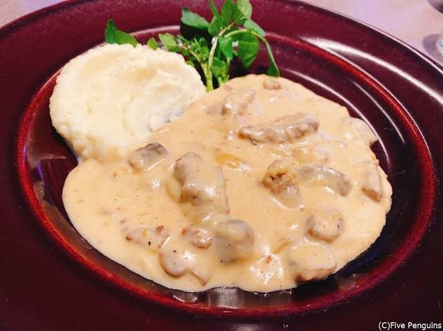 イギリス→ロシアでなくて、東京のロシア料理店のその店のビーフストロガノフ。ロシアでは必ずしもこんなじゃないよ