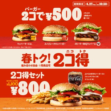 ワッパーチーズクポーン790円に4個1000円で1800円ぐらいか…