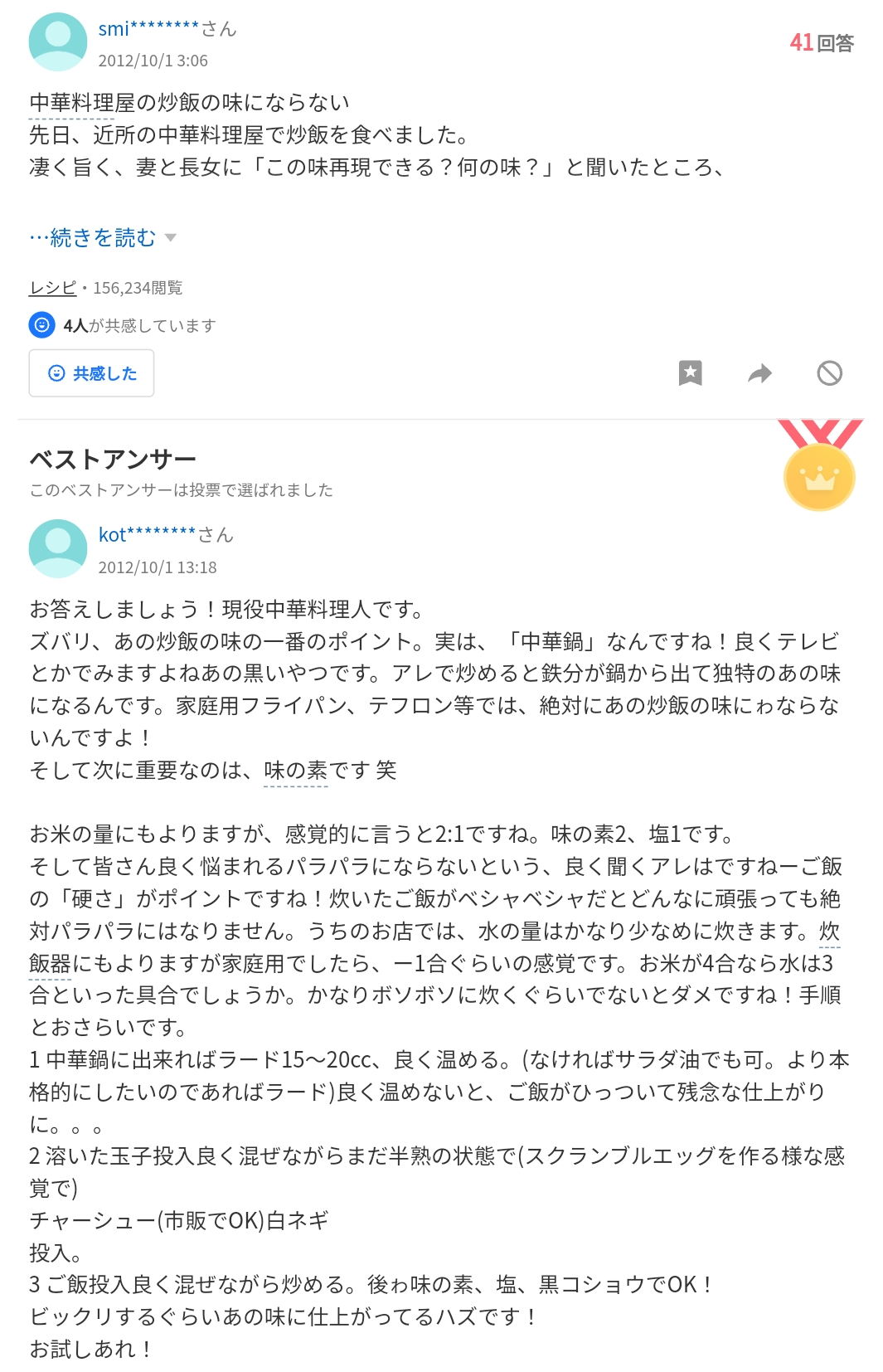 最近は弱火炒飯が市民権獲得しつつあるけど