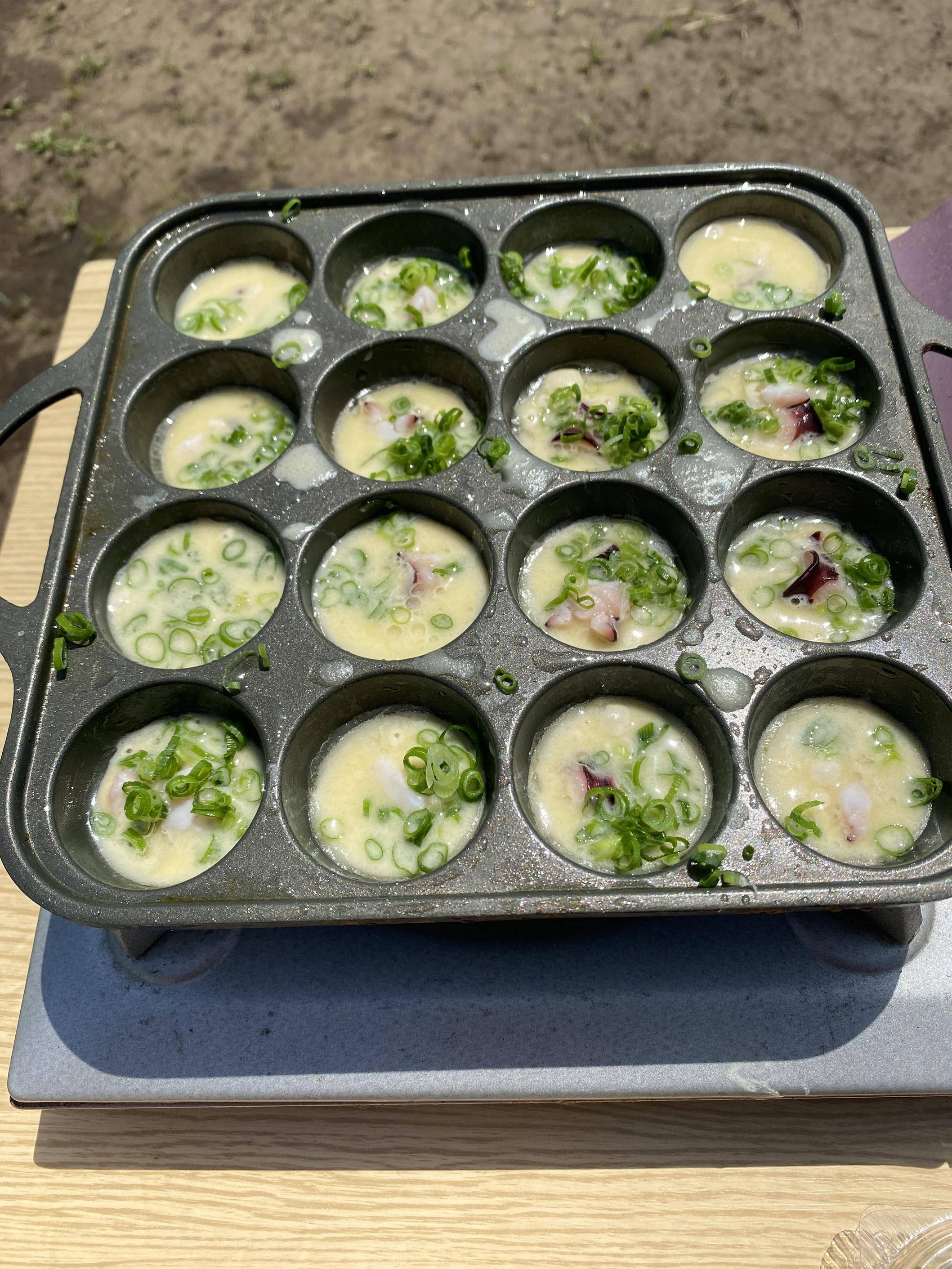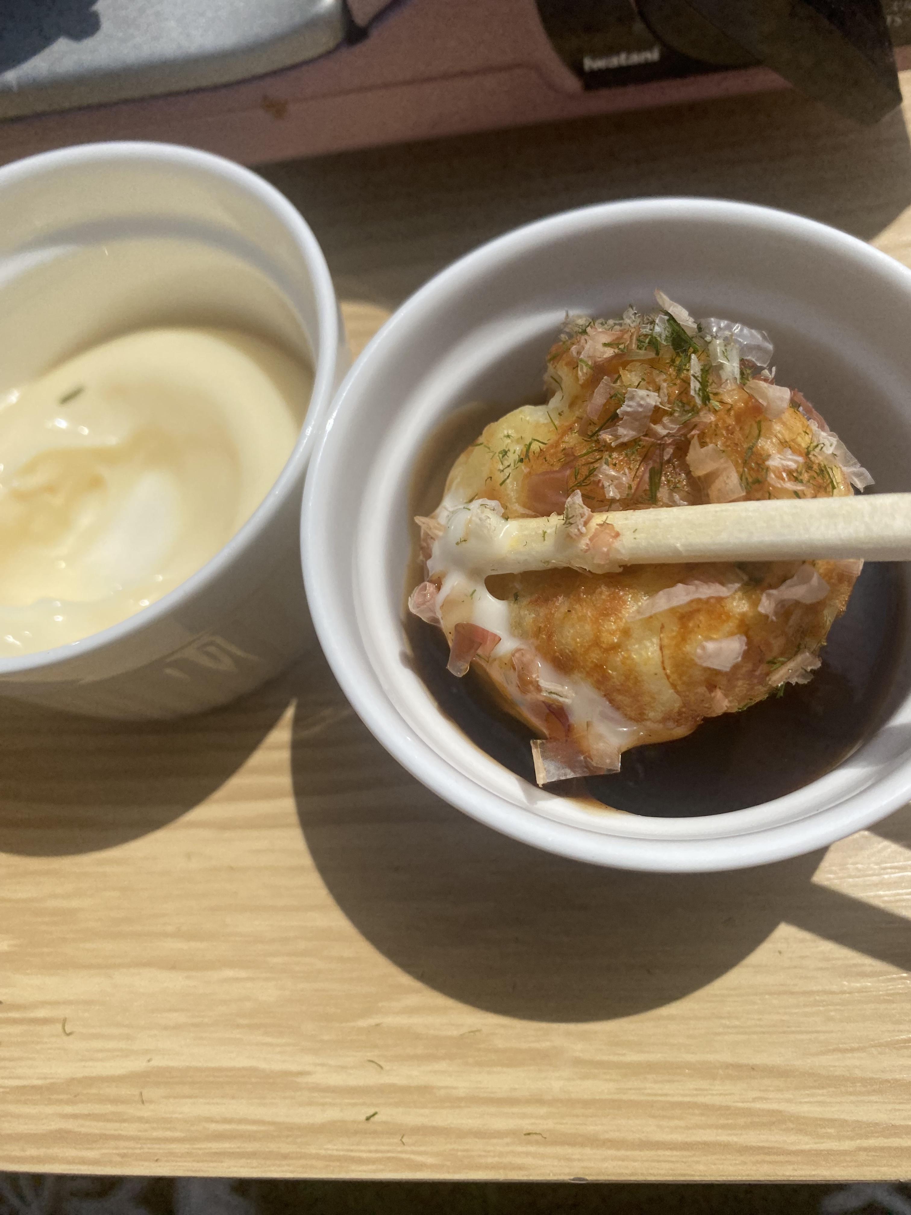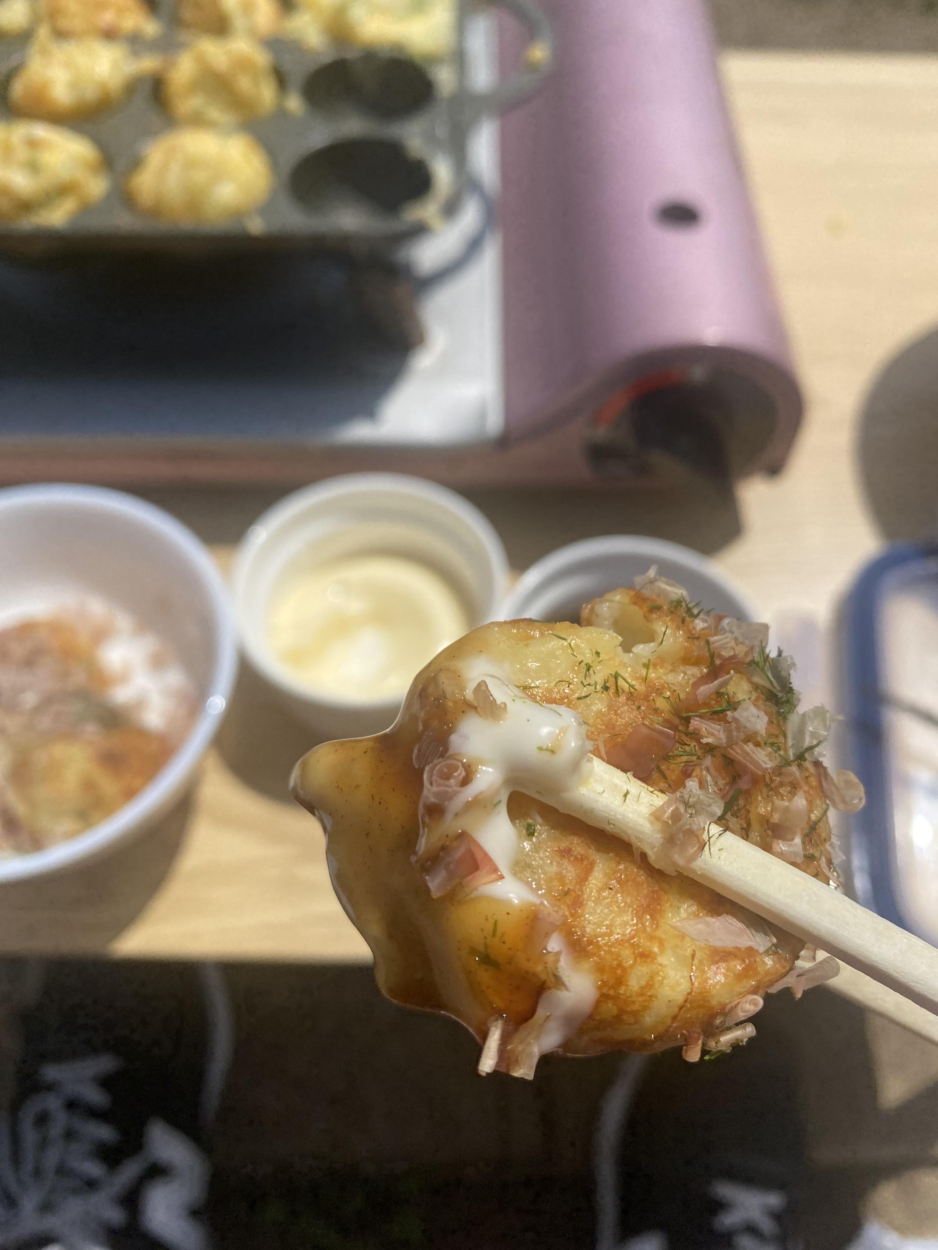 たこ焼きにオリーブオイルとニンニクチューブ入れればアヒージョできるぞ
