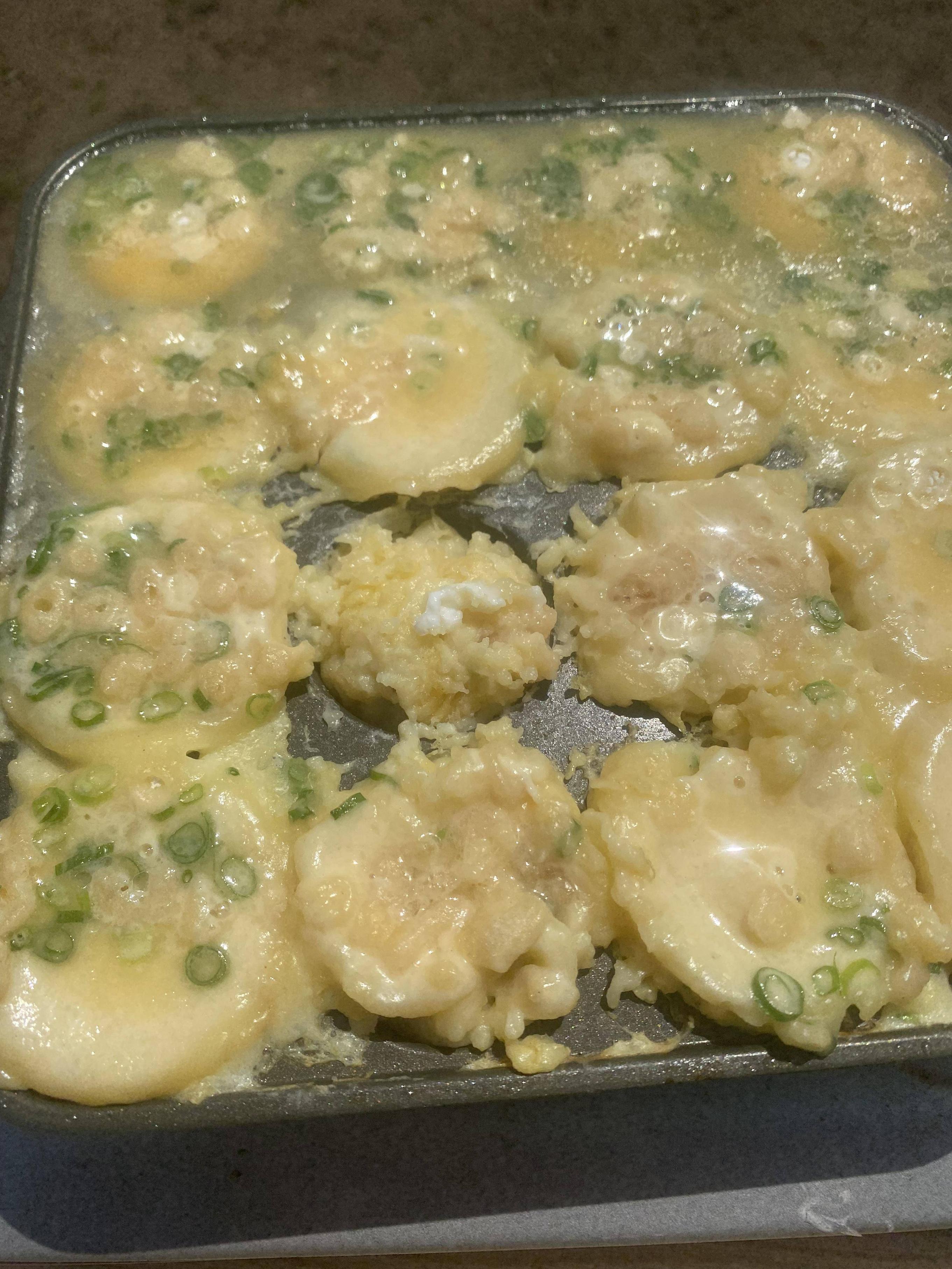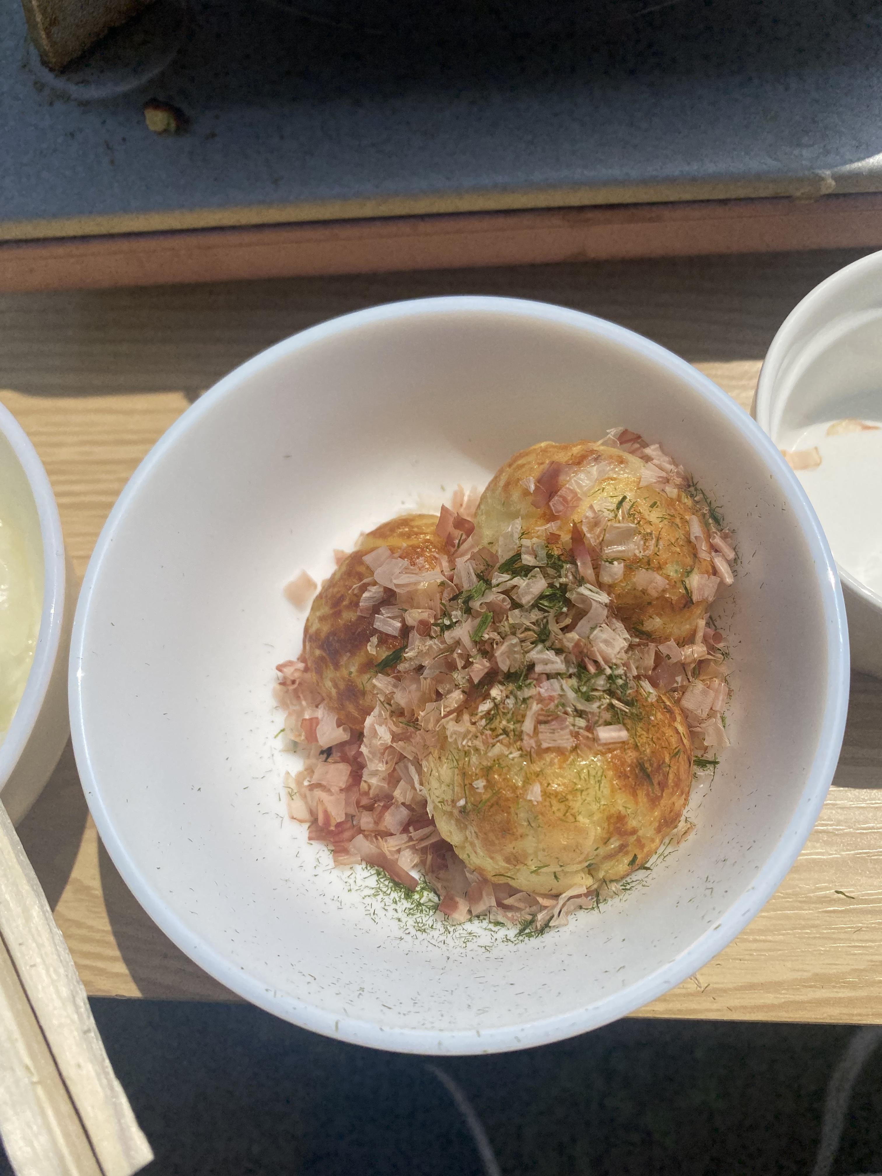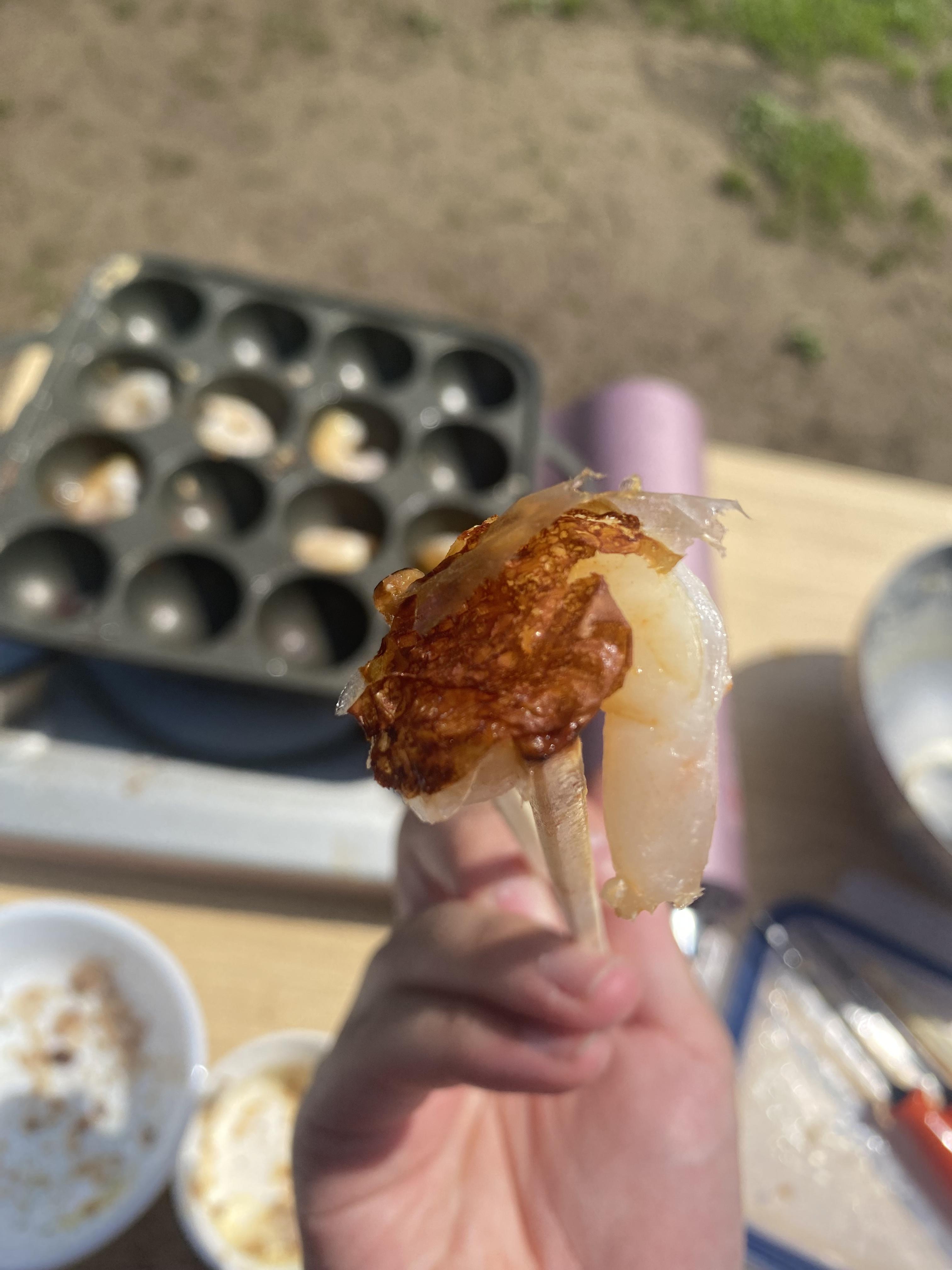 たこ焼きにオリーブオイルとニンニクチューブ入れればアヒージョできるぞ