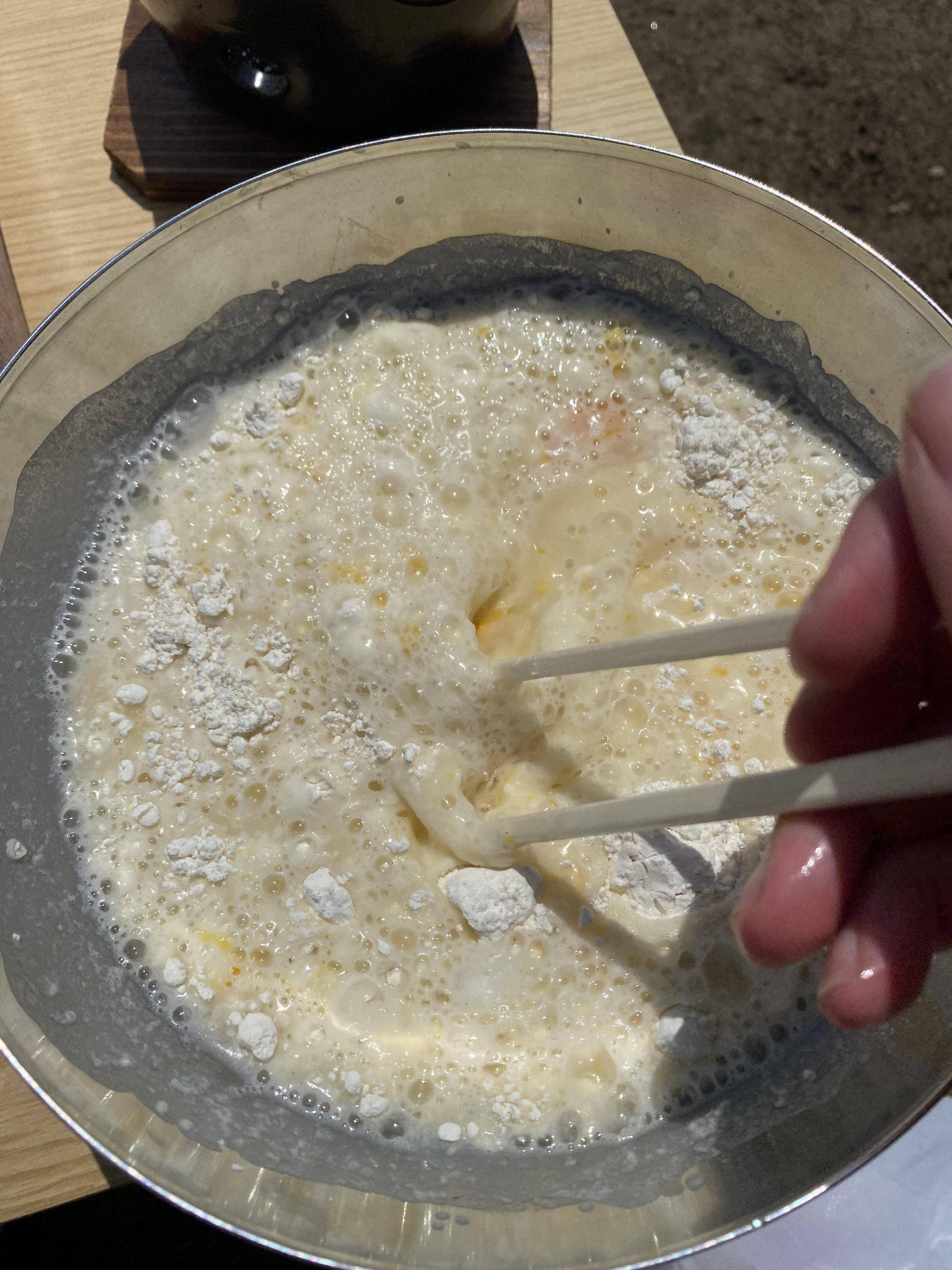 ペットボトルに粉と水と出汁入ってない粉なら東丸のうどんだし入れて蓋してガシャガシャ振るのが正解