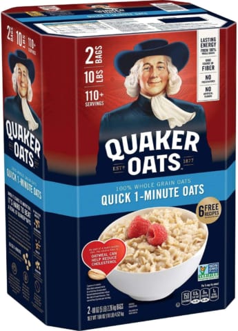オートミール(クイックオーツ)も業スーで100円/㎏なのでホットケーキに混ぜ込んで焼けば食パンより栄養素、食物繊維ともに優秀