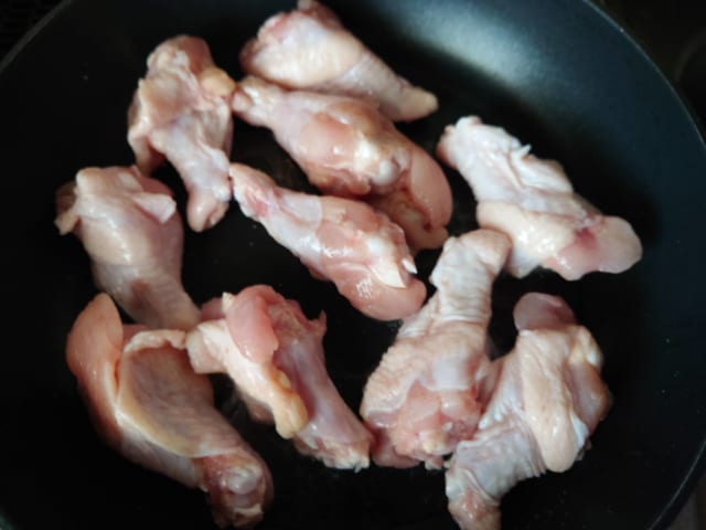 カレー作るのにアク取るのもアホだし玉ねぎをみじん切りするなら邪魔になるから手羽元と一緒に入れて無くなるようにする方がいい