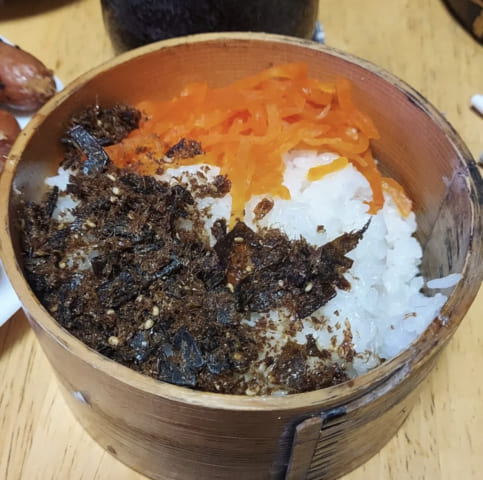ご飯の上のやつなに?にんじんしりしりと謎の黒い奴