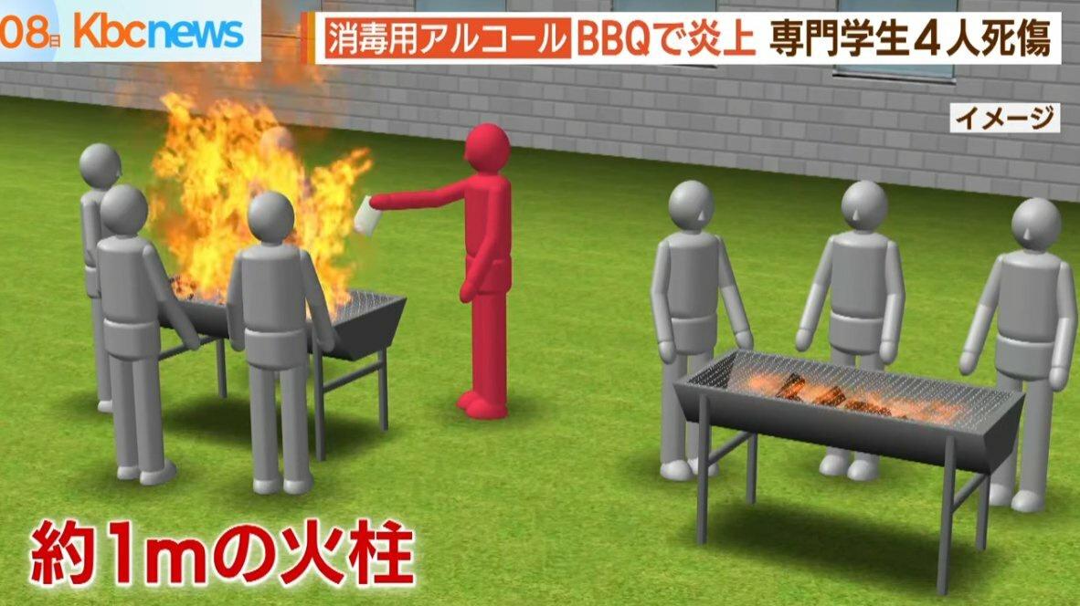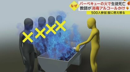 火炎部分だけじゃ相当引火性高い服来てなそうそう燃え移らんしアルコール自体が生徒側にかかったとかちゃうかな