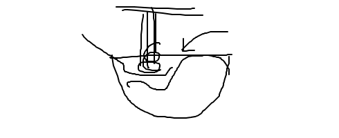 麺をリフトする、レンゲを丼内側に押し気味に置く