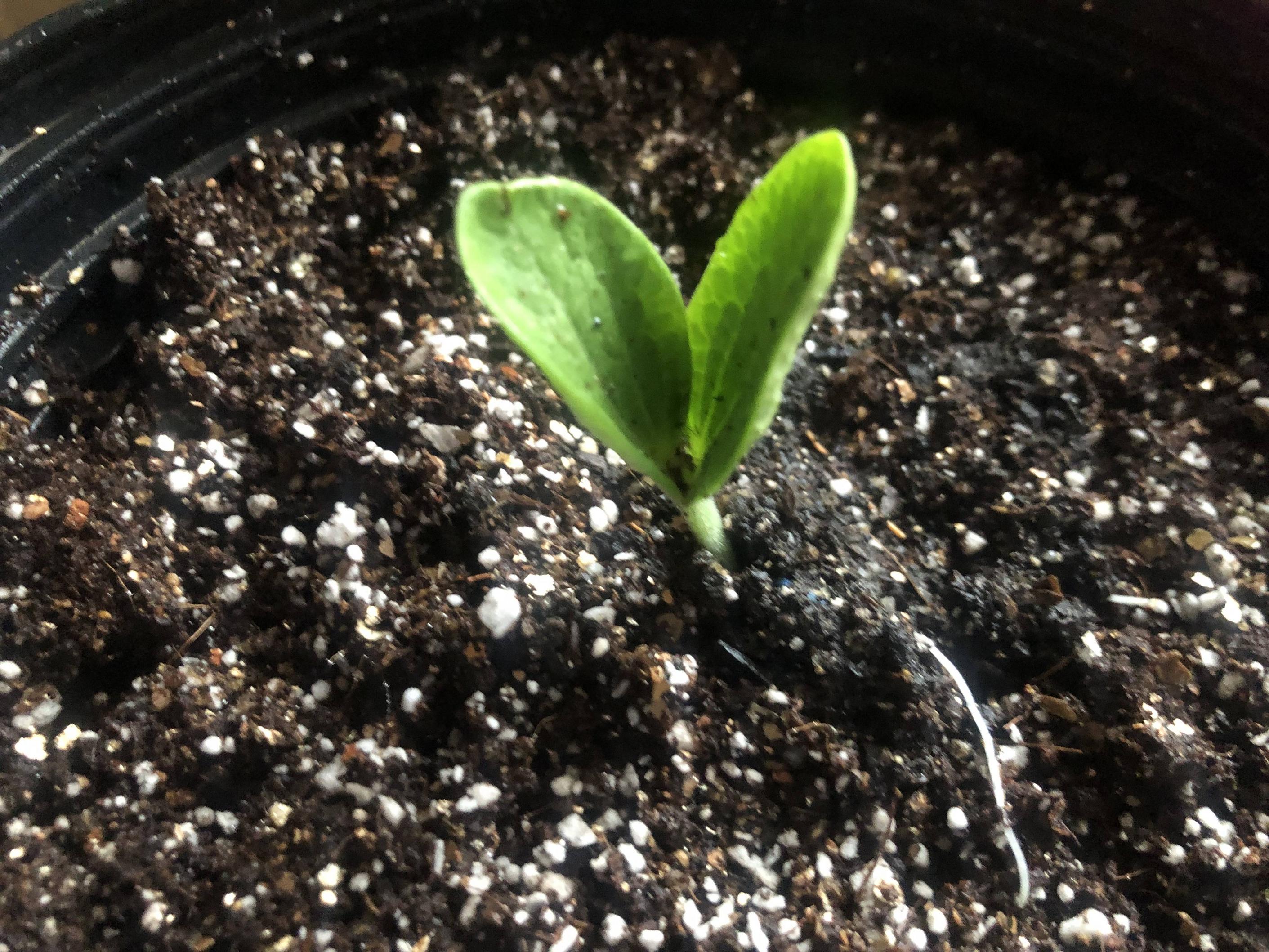 少し遅くなったけどズッキーニちゃんの芽が出てきたらぞ!はい可愛い!