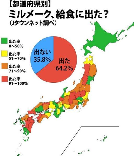 ミルメークは週一回は出てたような?瓶の牛乳でしか作れないからパック牛乳の学校では出ないかも。