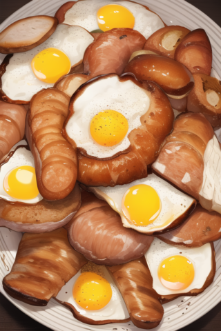 AI:厚切りパン 目玉焼き ソーセージ コーヒー