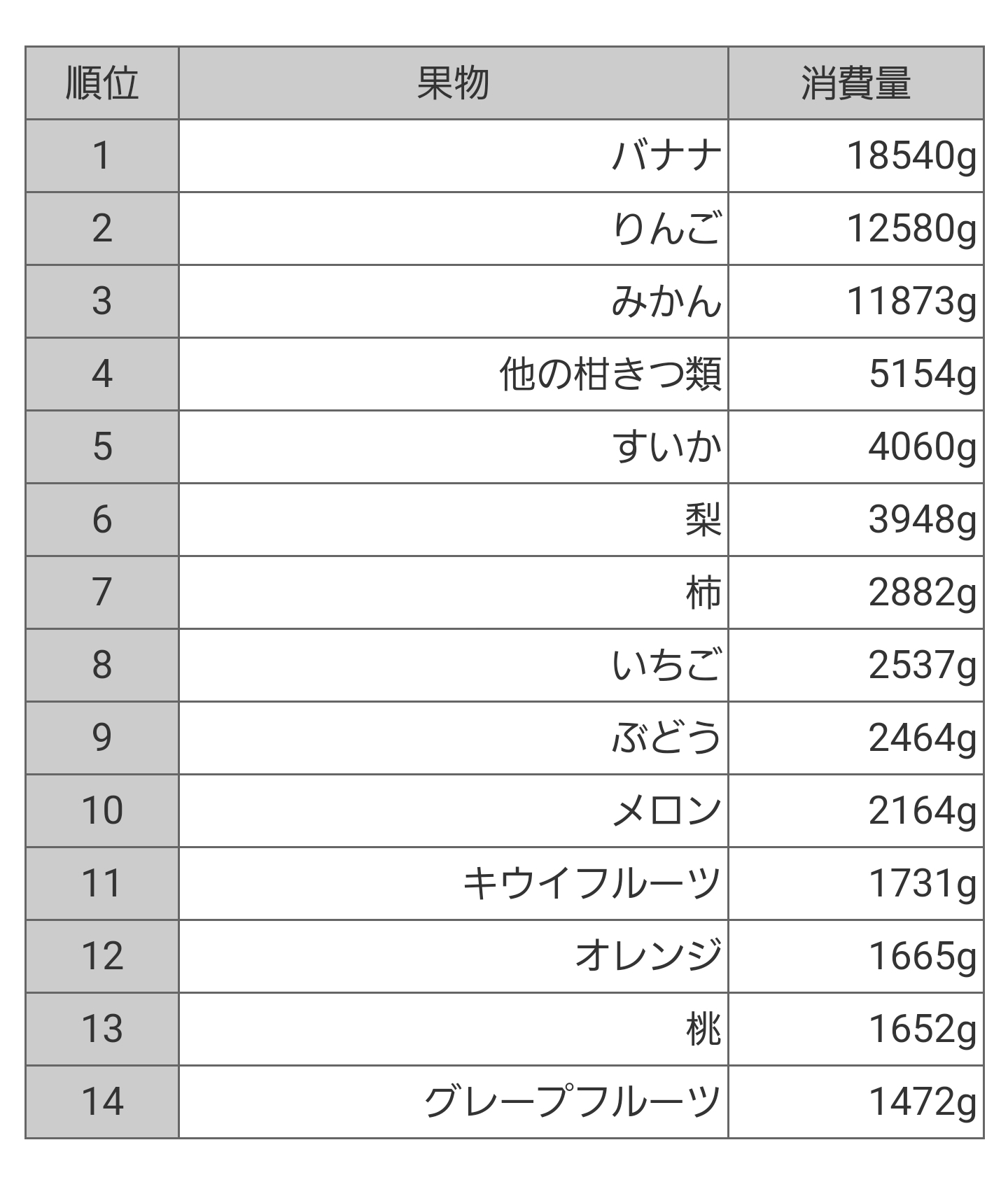 いや普通に食ってると思うけど果物以外に食うものが多すぎるんだよ