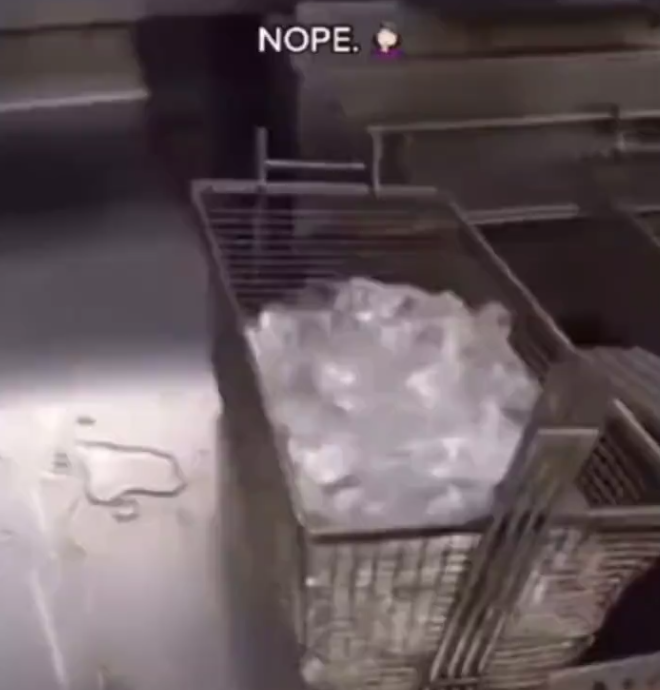 霜のついたポテト入れるだけでも溢れるのに 氷なんかやばいだろ
