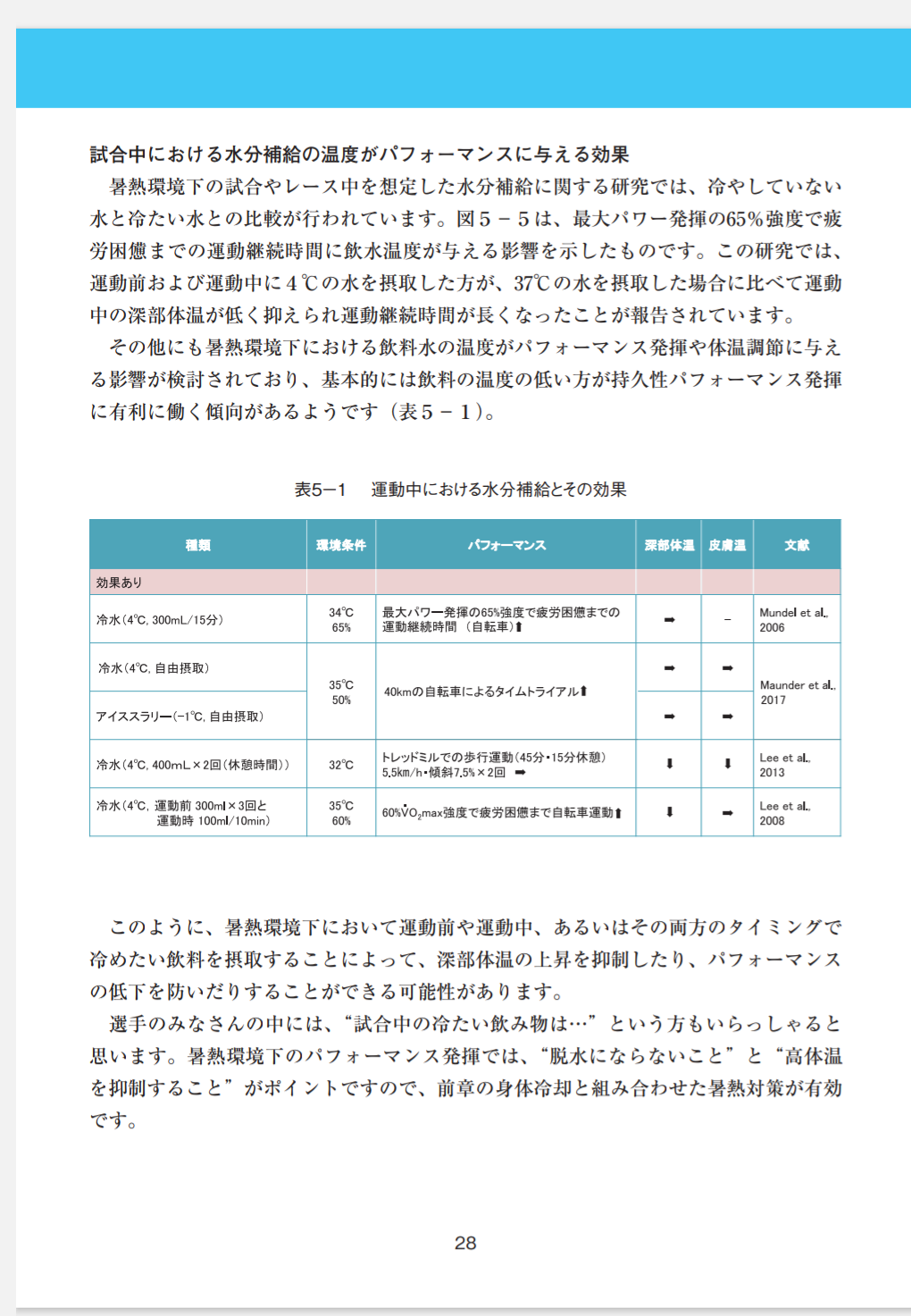 そりゃ水分補給で必要なのは水分の補給と体温低下の手助けだから冷たい方がいいわな