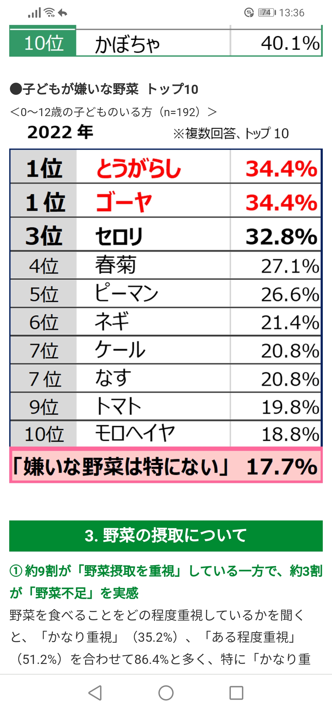 葉物で(個人的に)メジャーなほうれん草の方がランクインしそうだけど