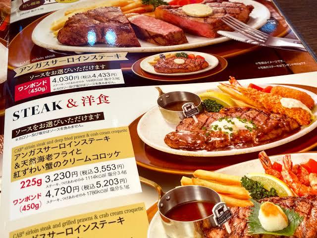 ステーキ、ライス、飲み物だけで3500円くらい取られる。