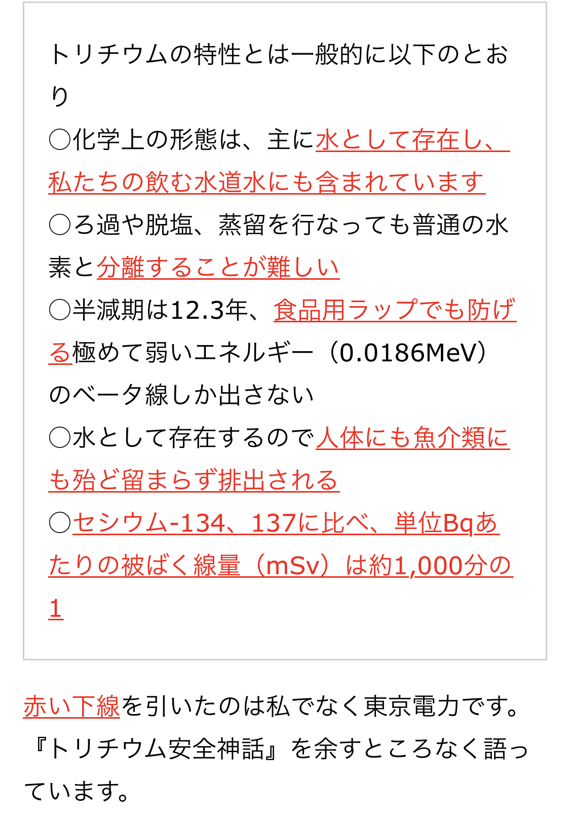 赤線引いてる所が根拠なトリチウム