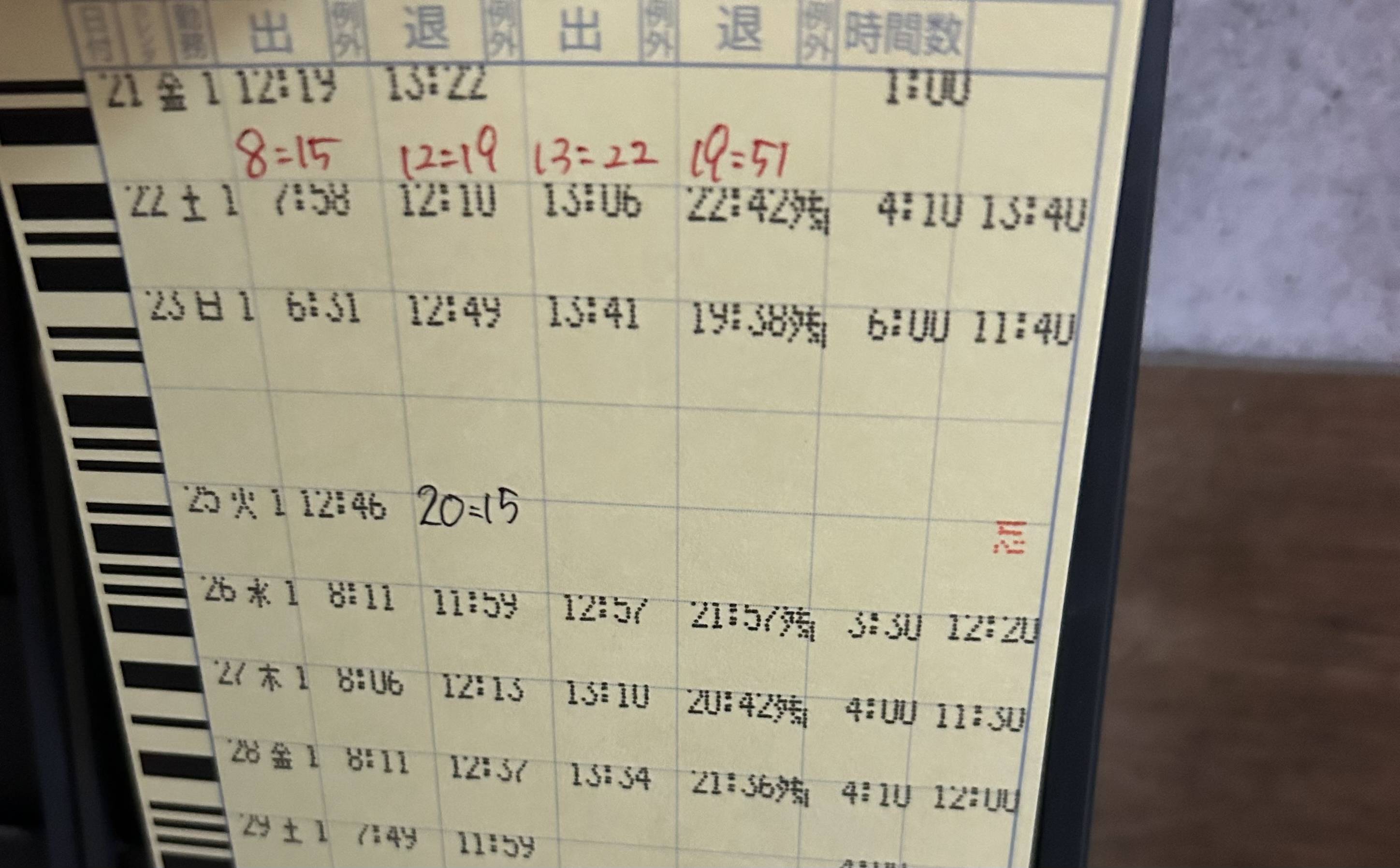 事務のババアが勝手にタイムカード押すから働いてても働いてないことになる