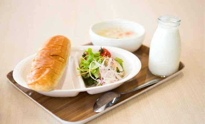 牛乳とコッペパンにマーガリンに汁物1品が普通だろ