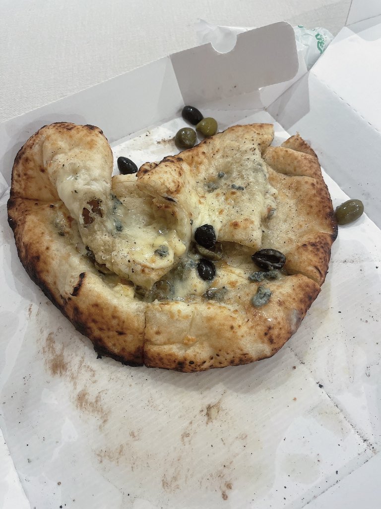 ぐちゃぐちゃになってるけど美味しそうなピザやな~