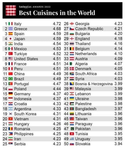 はい外国人が決めたメシが美味い国ランキングね