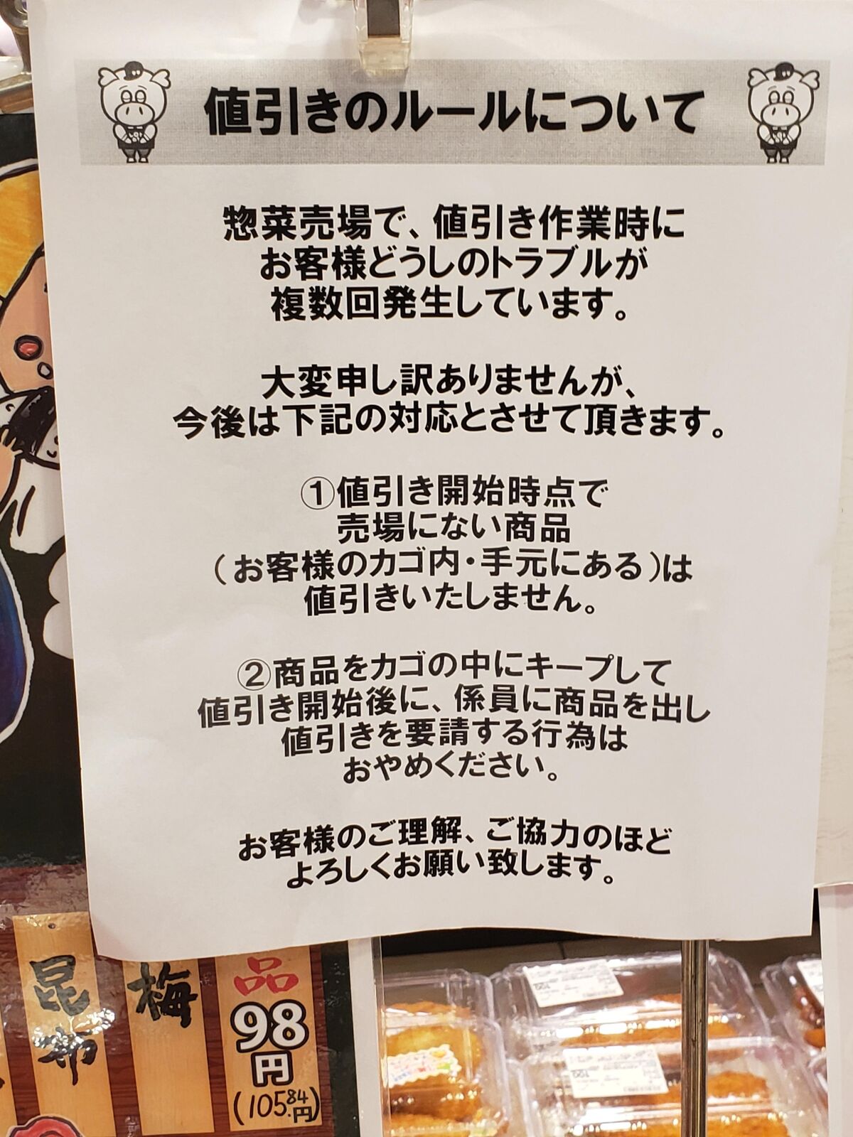ちょっと高めのスーパーだと半額になっても民度が保たれる。