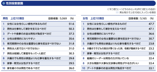 令和3年度性別による無意識の思い込み(アンコンシャス・バイアス)に関する調査結果(内閣府男女共同参画局)