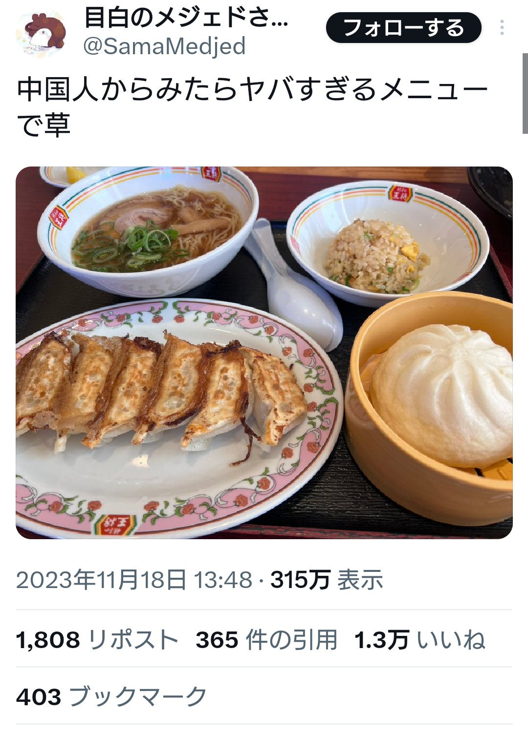 焼き餃子も炒飯も余り物の再利用だから中国人からしたらもっといいもん食えよとなるらしい