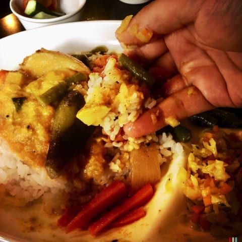 カレーを混ぜずに食べるというのは、フォークの背にご飯を乗せるマナーに近い、日本固有の変なマナーなんだけど、なぜか市民権を得ているね