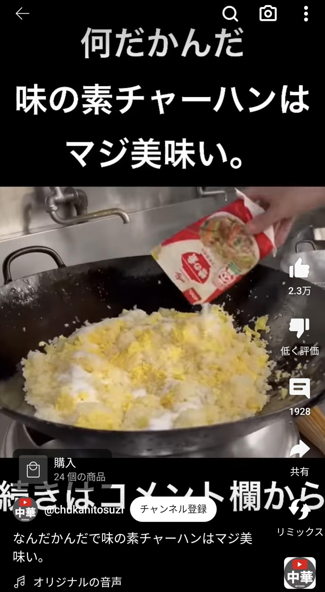 まあ鶏ガラスープの顆粒や味覇使ってるから化学調味料自体は日常的に摂取してるわけだが。