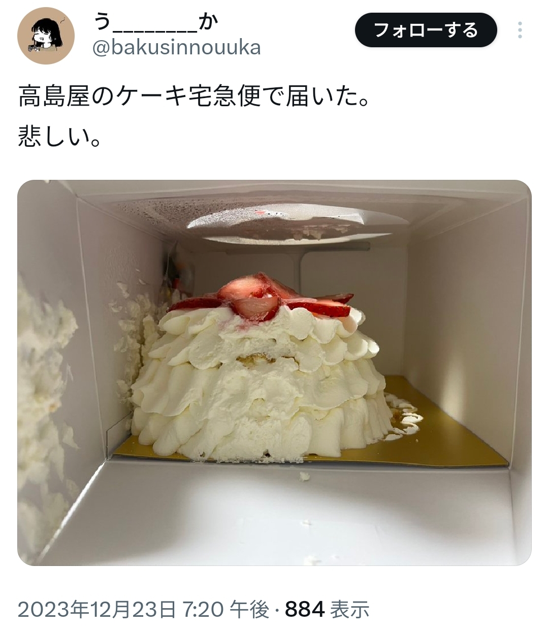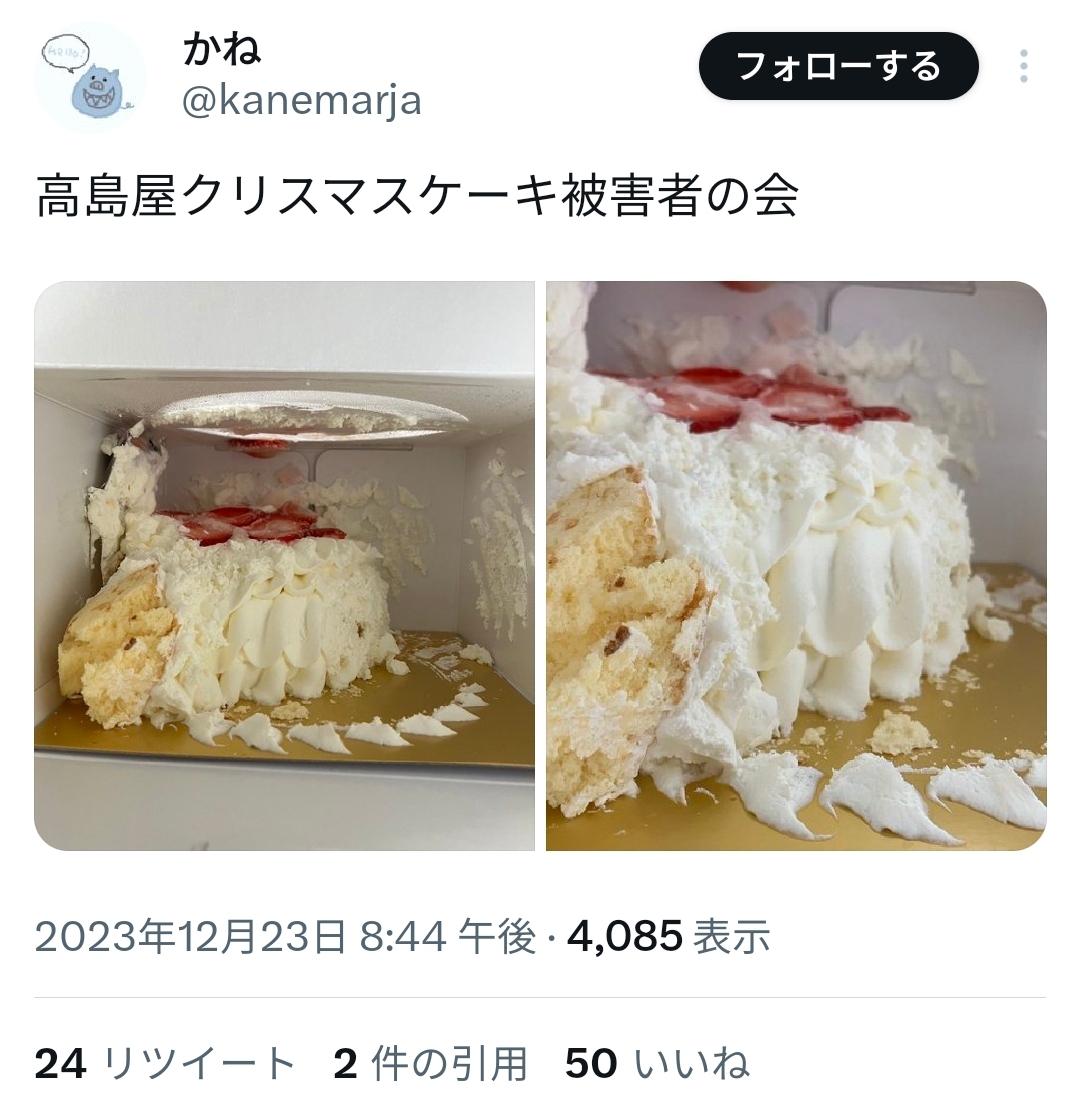 年末のクソ忙しい時期に繊細なケーキをネット通販で買うっていうのがそもそもって感じはするけどなwww